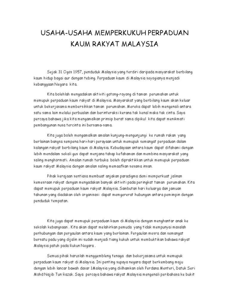 Usaha Usaha Memperkukuh Perpaduan Kaum Rakyat Malaysia Pdf